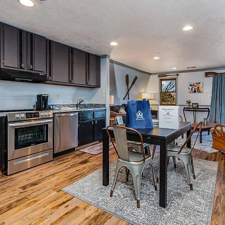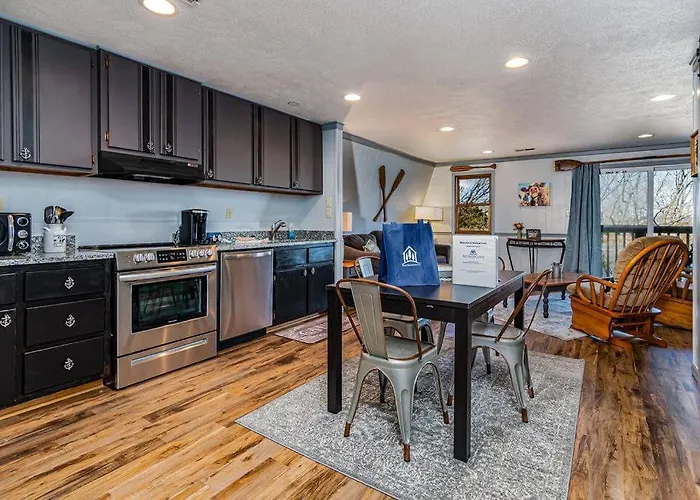 The 65 m² Lake Front King Suite: Full Kitchen-Lakefront Deck- Shared Hot Tub is at a distance of 3.6 km from Ancient Ozarks Natural History Museum and provides spa facilities such as a Jacuzzi. Guests can enhance their relaxation experience at the apartment with access to a wellness area.